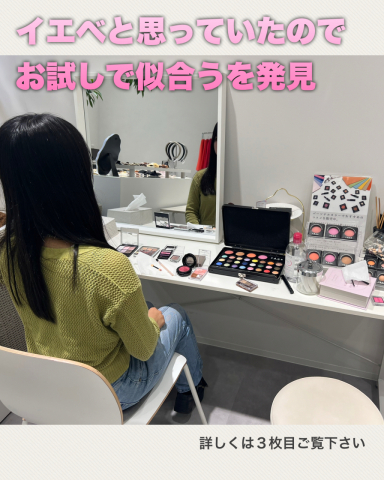 ◯本日のご来店 「かわいくなる4つの魔法」①〜③を診断✨ お客様のお悩み 👉 自分はイエベ秋だと思っていたけど、イエベ秋のアイシャドウがイマイチ… 👉 本当に似合うコスメを知りたい! 診断の結果は・・・ 💎 ブルベ冬タイプ 💎 透明感のある華やかなカラーがとてもお似合いでアイシャドウも秋色ではなく、ブルベ冬カラーに変えるとぐっと華やかに💄 ありがとうごさいました。 岡部あつこ
